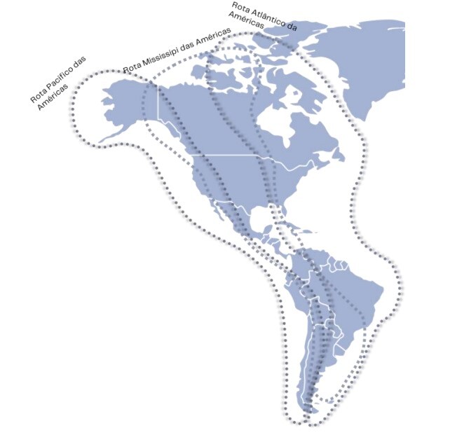 Na figura 2, as principais rotas de aves migratórias. Figura 2. Rotas de aves migratórias.