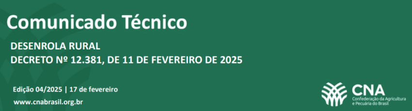 No dia 12 de fevereiro foi publicado, no Diário Oficial da União, o Decreto nº 12.381, instituindo o Programa de Regularização de Dívidas e Facilitação de Acesso ao Crédito Rural da Agricultura Familiar – o Desenrola Rural – e regulamentando os art. 14 e art. 15 da Lei nº 15.038, de 29 de novembro de 2024.