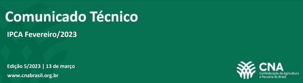 O Índice de Preços ao Consumidor Amplo (IPCA) registrou alta de 0,84% em fevereiro de 2023, esse valor foi 0,31 p.p. acima do registrado em janeiro, quando a inflação foi de 0,53%; em fevereiro de 2022, o índice apresentou alta de 1,01%. O IPCA acumulado nos últimos 12 meses apresenta alta de 5,60%, acima da meta para 2023, de 3,25%, com tolerância de 1,5 p.p. para cima ou para baixo.