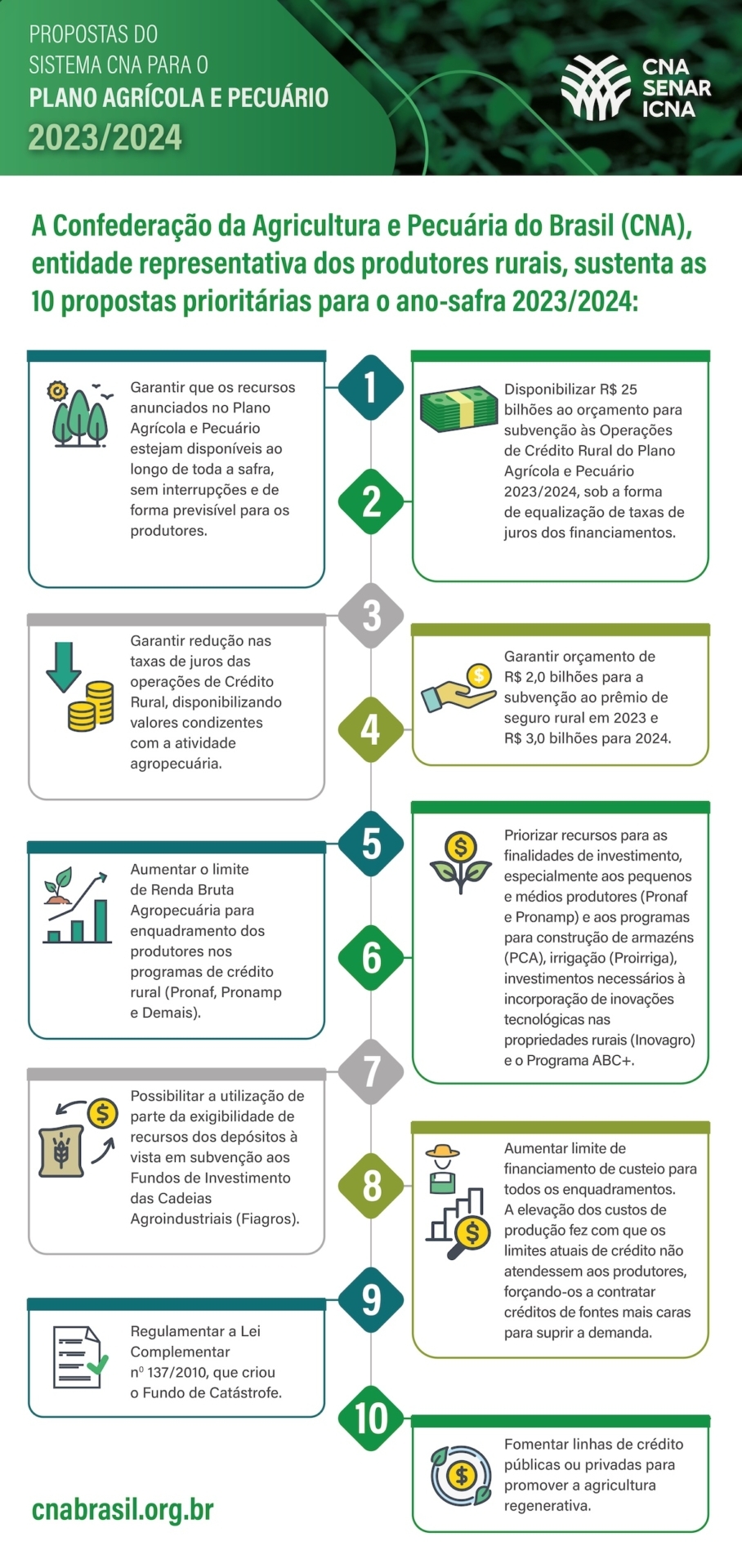 Infográfico das Propostas do Sistema CNA para o Plano Agrícola e Pecuário 2023/2024