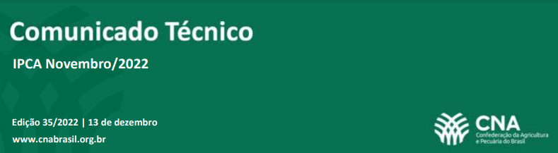 A Inflação, medida pelo Índice de Preços ao Consumidor Amplo (IPCA), apresentou alta de 0,41% em novembro de 2022, ficando 0,18 p.p. abaixo do registrado em outubro de 2022, que apresentou aumento de 0,59%, enquanto que em novembro de 2021, o índice teve alta de 0,95%. O IPCA acumulado nos últimos 12 meses apresenta alta de 5,90%, acima da meta para 2022, de 3,5%, com tolerância de 1,5 p.p. para cima ou para baixo.