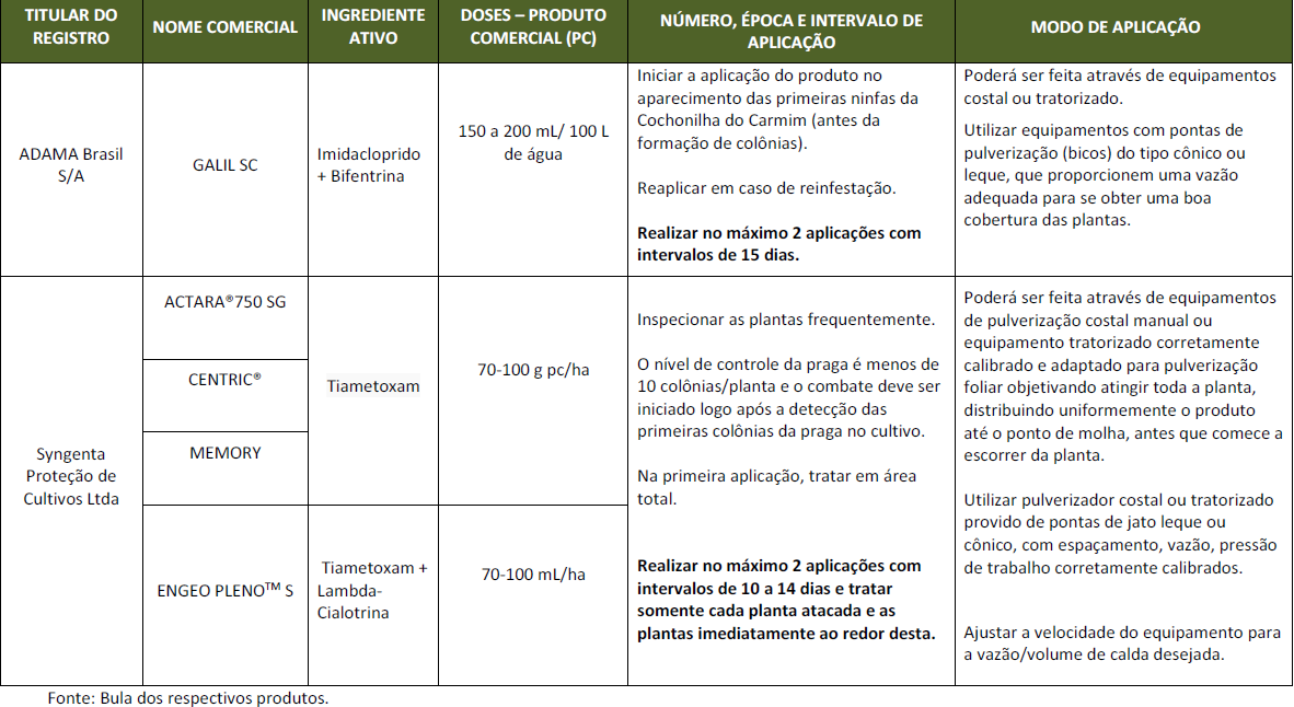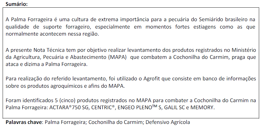 O levantamento dos produtos registrados no Ministério da Agricultura, Pecuária e Abastecimento (MAPA) que combatem a Cochonilha do Carmim, praga que ataca e dizima a Palma