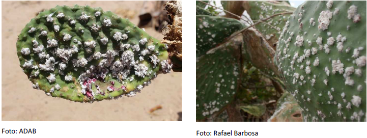 Infestação da Cochonilha do Carmim em raquetes de Palma Forrageira