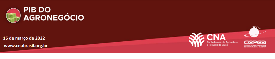 O Produto Interno Bruto (PIB) do agronegócio brasileiro, calculado pelo Centro de Estudos Avançados em Economia Aplicada (Cepea), da Esalq/USP, em parceria com a Confederação da Agricultura e Pecuária do Brasil (CNA), cresceu 8,36% em 2021, a despeito dos efeitos adversos do clima sobre as safras agrícolas. Com isso, o setor alcançou participação de 27,4% no PIB brasileiro, a maior desde 2004 (quando foi de 27,53%). Destacamos que, entre o terceiro e o último trimestre daquele ano, o agronegócio recuou 2,03%, refletindo sobretudo uma piora nos preços reais do setor.