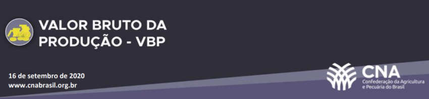 O valor bruto da produção agropecuária deve alcançar o valor de R$ 823 bilhões em 2020, um incremento de 13,7% frente ao observado em 2019. Tal resultado reflete um salto de R$ 81 bilhões, ou 18%, no VBP agrícola, e um crescimento de R$ 17,9 bilhões (ou 6,6%) no VBP pecuário. Tais estimativas estão baseadas nos dados de preço e produção disponíveis até agosto de 2020.