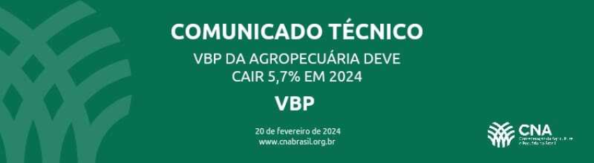 O Valor Bruto da Produção (VBP) da agropecuária deve atingir R$ 1,174 trilhão em 2024, de acordo com a Confederação da Agricultura e Pecuária do Brasil (CNA). O VBP é o faturamento bruto dentro dos estabelecimentos rurais, considerando as produções agrícolas e pecuárias, com a média de preços recebidos pelos produtores de todo o país.