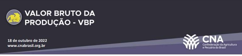O Valor Bruto da Produção (VBP) da agropecuária é projetado em R$ 1,358 trilhão em 2022, conforme estimativa realizada pela Confederação da Agricultura e Pecuária do Brasil (CNA). O VBP é o faturamento bruto dentro dos estabelecimentos rurais, considerando as produções agrícolas e pecuárias, e a média de preços recebidos pelos produtores de todo o país. A projeção foi feita com dados até setembro de 2022 para as estimativas agrícolas e pecuárias, e também para os preços.