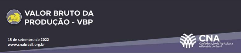 O Valor Bruto da Produção (VBP) da Agropecuária é projetado em R$ 1,357 trilhão em 2022, conforme estimativa realizada pela Confederação da Agricultura e Pecuária do Brasil (CNA). O VBP é o faturamento bruto dentro dos estabelecimentos rurais, considerando as produções agrícolas e pecuárias, e a média de preços recebidos pelos produtores de todo o país. A projeção foi feita com dados até agosto de 2022 para as estimativas agrícolas e pecuárias, e também para os preços.