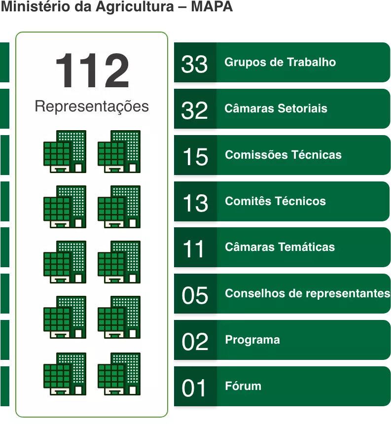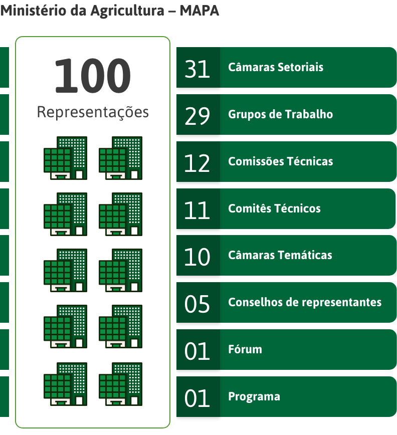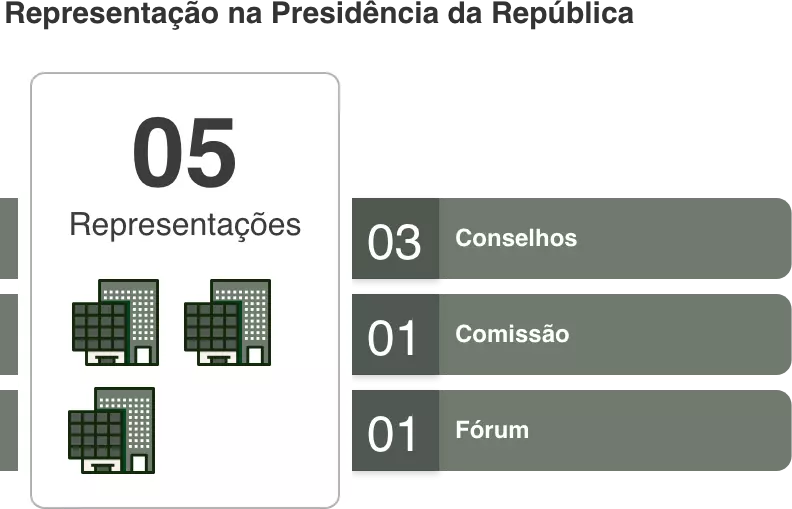 Com um corpo técnico altamente qualificado, a CNA possui 219 representações nos principais órgãos de atuação do setor.